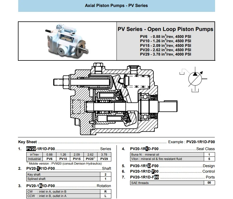 | Model Number | PV38 PV29 PV20 Series, PV20-2R1D-C02, PV10-2R1C-C00, PV15-2R1C-C00, PV29-2R10-C02 |
