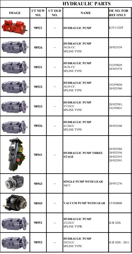 JCB Series Hydraulic Pump JCB205 332/F9031 20/925581 333/G5391 7029120078 JCB206 20/925340 7029120005 Gear Pump